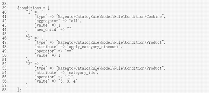 You are creating a module that creates a Catalog Price Rule. You have written this code to specify the conditions: