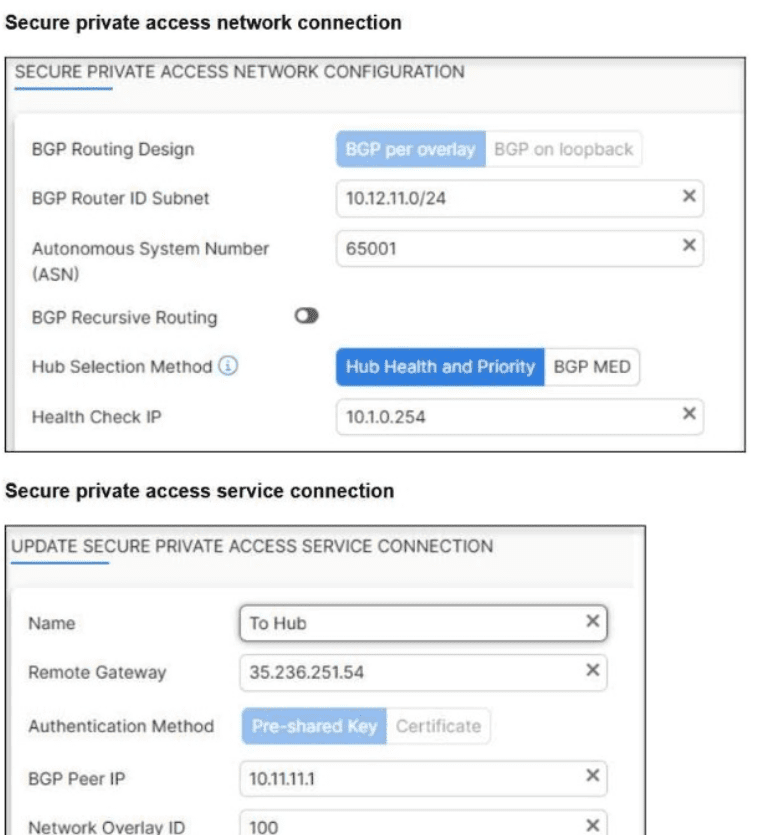 A FortiSASE administrator is trying to configure FortiSASE as a spoke to a FortiGate hub.