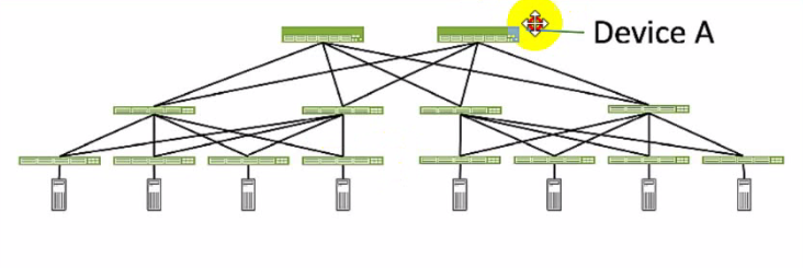A . leaf is wrong because a leaf device is an edge device that connects to the servers, storage, or other network devices. In the exhibit, Device A is not connected to any servers, storage, or other network devices, but only to four leaf devices, which indicates that it is not a leaf device.