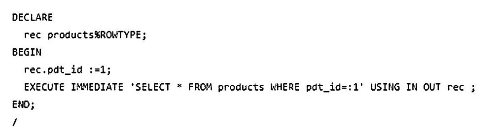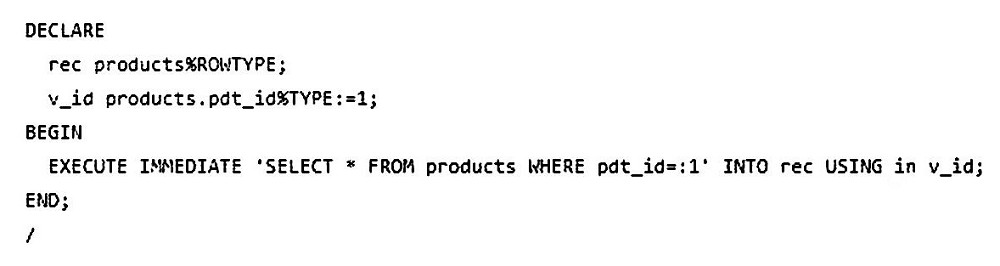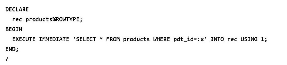 A row with PDT_ID = 1 exists. Which two blocks of code will execute successfully by user SH and give the same output? (Choose two.)