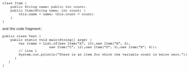 Which code fragment at line 1 accomplish this?