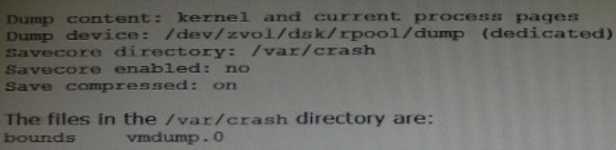 Documentation states that there should be two core files for each crash dump in the /var/crash directory named vmdump.0